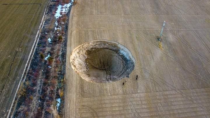Un nouveau gouffre de 37 mètres de diamètre et 12 mètres de profondeur est apparu , dans le district de Karap ınar à Konya.