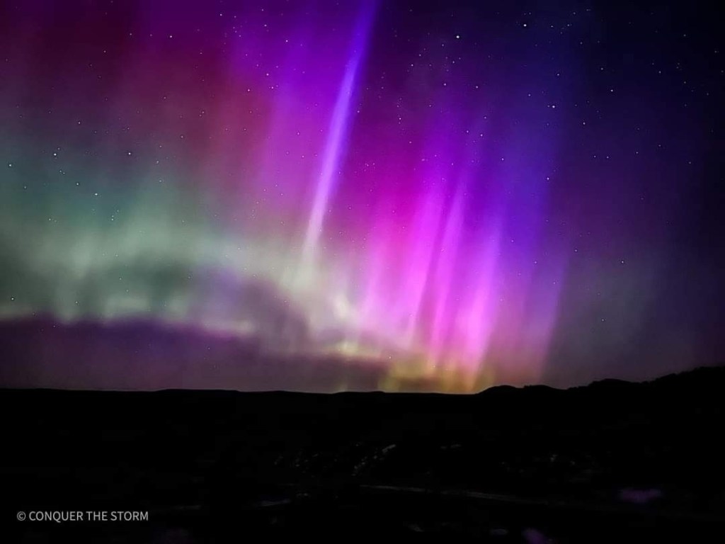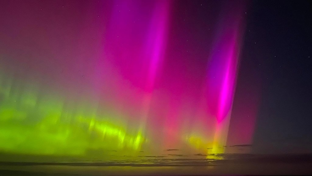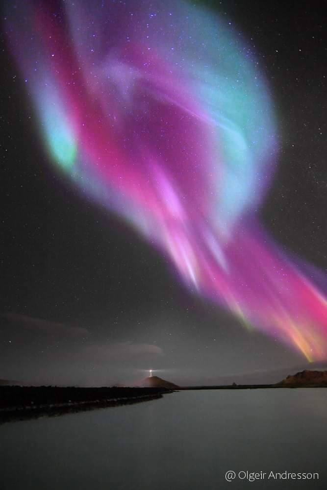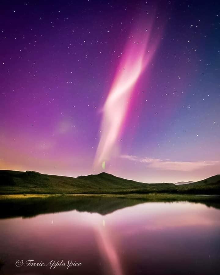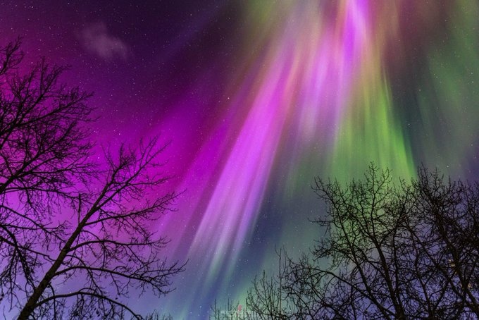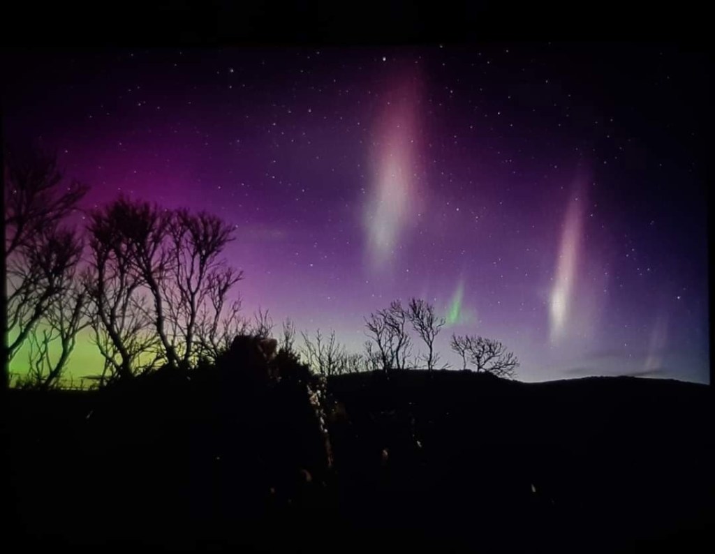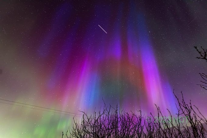 Il est très rare d’assister à une aurore violette, cela n’arrive que lors de période de très forte activité solaire. ce qui était le cas. avec ce KP 7..