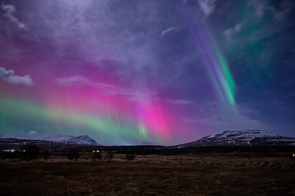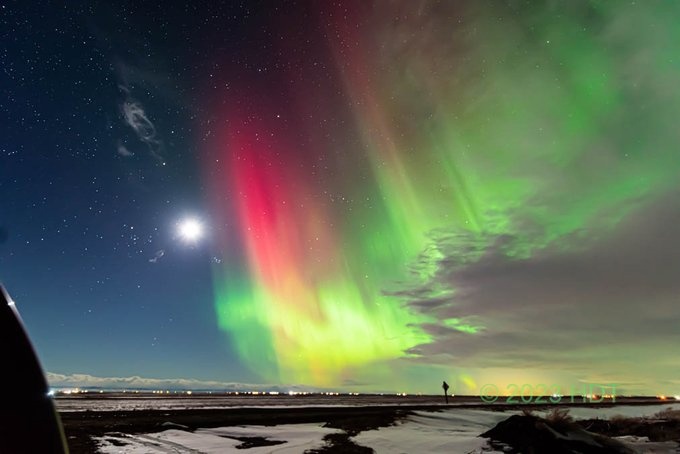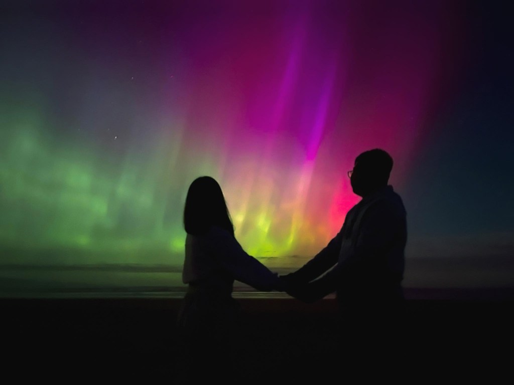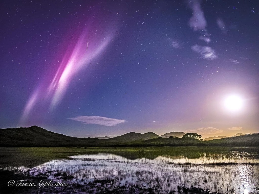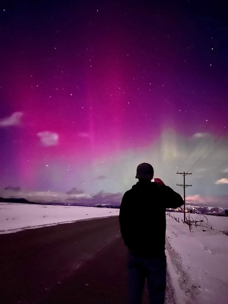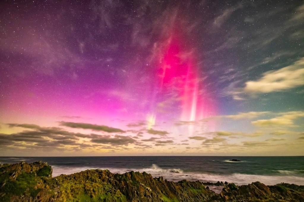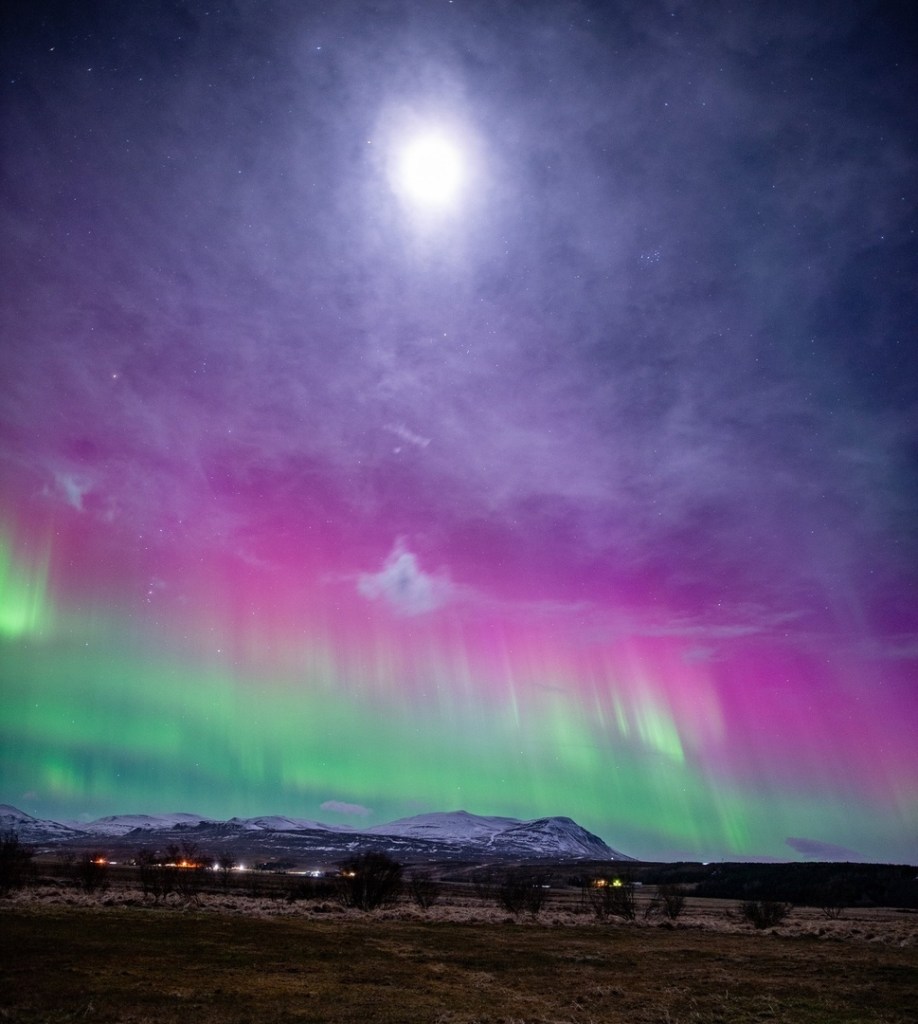Il est très rare d’assister à une aurore violette, cela n’arrive que lors de période de très forte activité solaire. ce qui était le cas. avec ce KP 7..