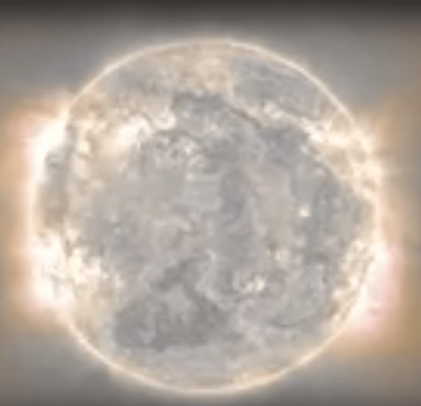 en bas à gauche , qui vient ensemencer le Soleil.. et celui ci réagit répond par des éruptions..