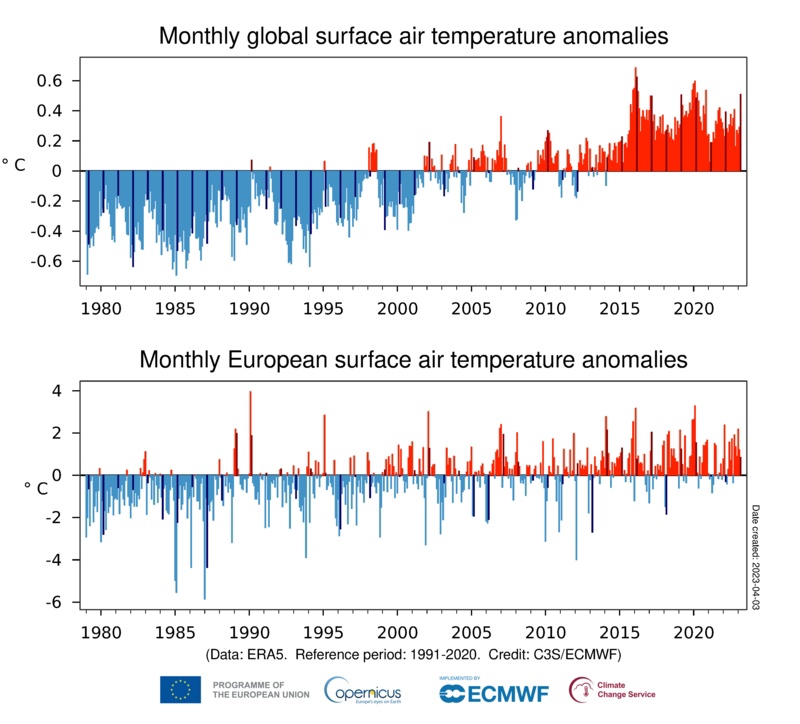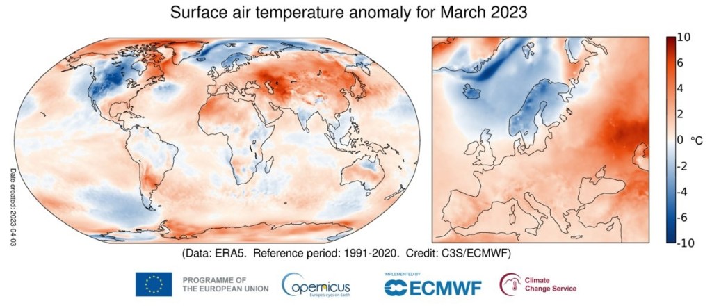 D’après Copernicus le mois de mars 2023 fut le 2ème plus chaud jamais enregistré à l’échelle de la planète