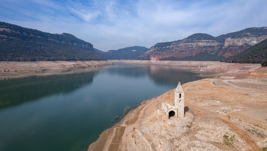 Photo 5 : En Espagne, après des mois de sécheresse, les retenues d’eau créées sous Franco laissent apparaître les villages qui étaient engloutis depuis 60 ans