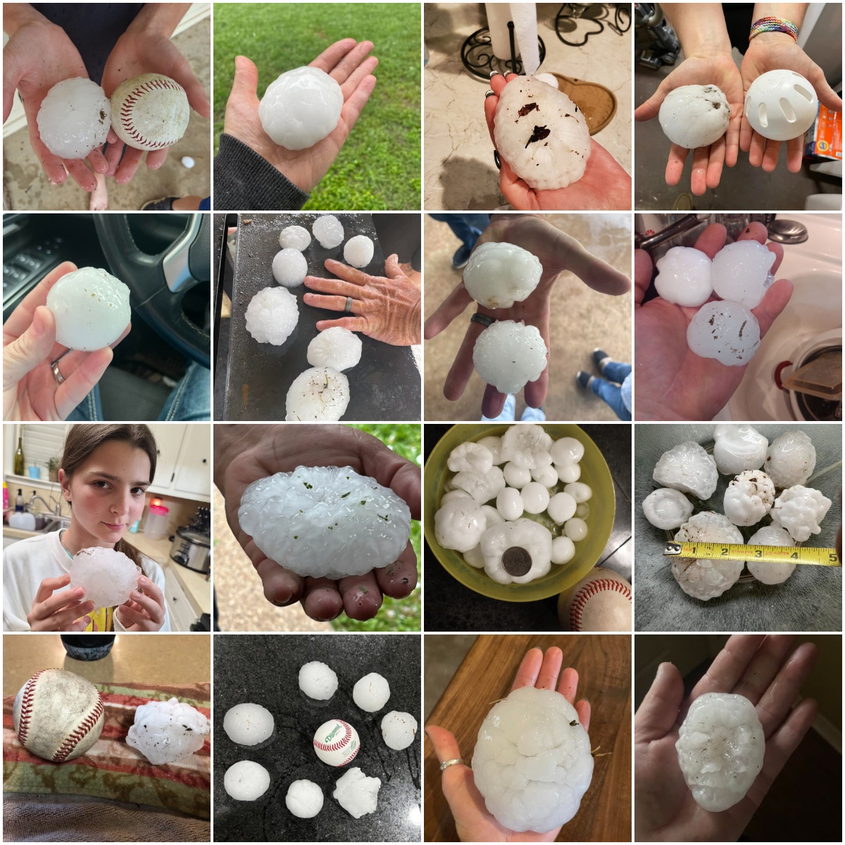 il pleut des balles de baseball , dans le centre du Texas…Grêlons géants observés 2 miles à l’est de waco , au Texas