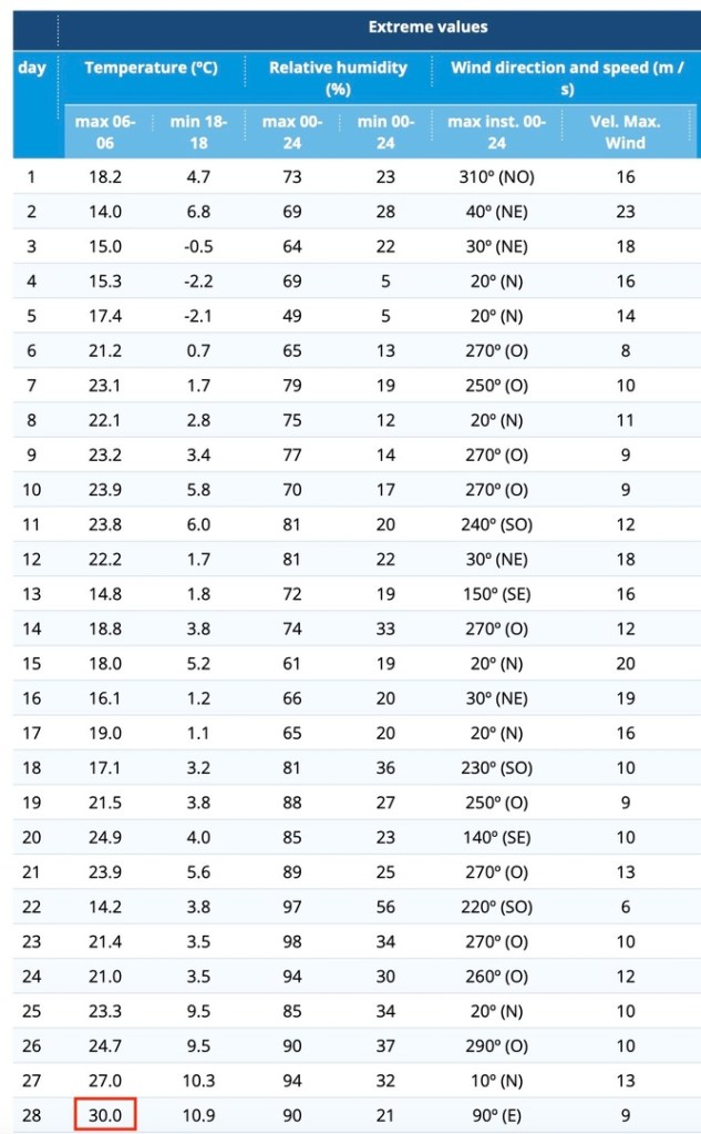 Après l’Espagne , le Portugal et le Maroc hier, l’Andorre a établi aujourd’hui un nouveau record d’avril avec 30,0°C à la Borda Vidal (873 m) !