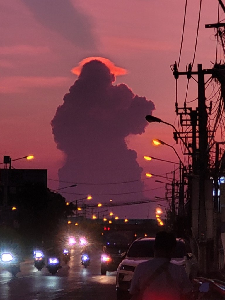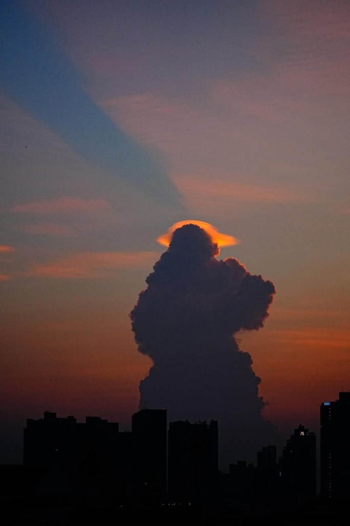 Avant il y a eu création de la manifestation d’un nuage sculpté qui a été capturé , puis un vaisseau plasma est apparu dans le soleil couchant , puis cette manifestation c’est déplacée en suivant la ligne bleue du rayon anticrépusculaire , qui mène à l’horizon , en un point unique , la Source d’où tout provient et ou tout revient…..
