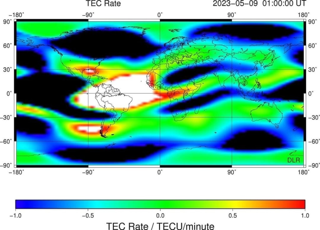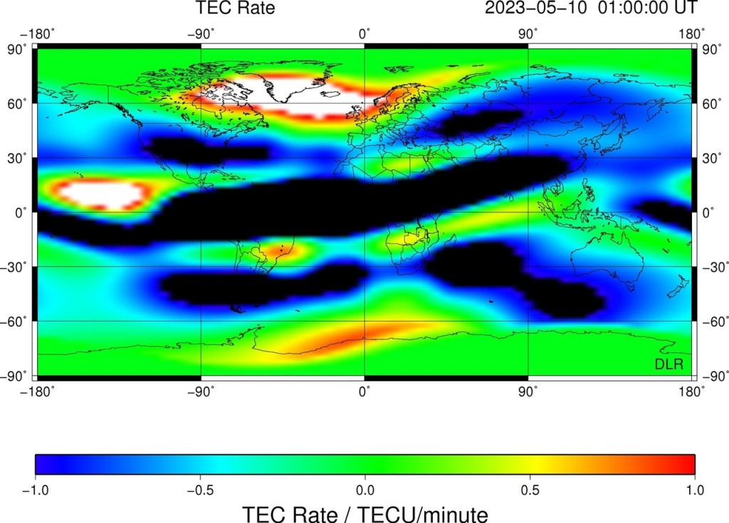 Ces cartes sont également utilisées pour surveiller le temps ionosphérique et pour annoncer immédiatement les tempêtes ionosphériques qui se produisent souvent en réponse aux activités du vent solaire et de la magnétosphère terrestre ainsi que de la thermosphère.