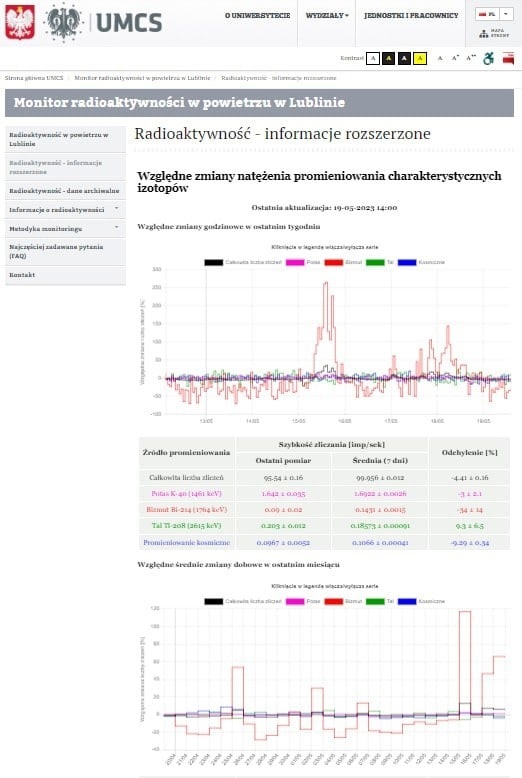 l’université Marie Curie-Skłodowska a enregistré le 16 mai à Lublin, en Pologne, un niveau élevé du bismuth 214 qui se forme au cours de la désintégration de l’uranium 238. Cet isotope est un composant majeur de l’uranium appauvri qui est utilisé par exemple dans l’industrie de l’armement. ( graphique )