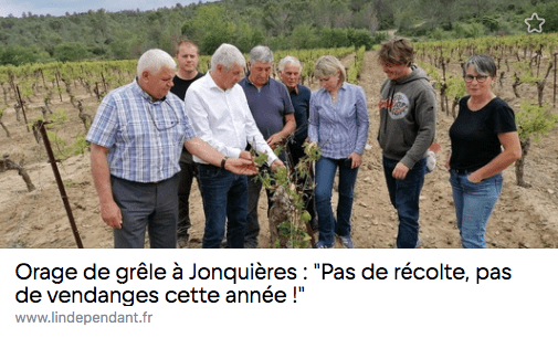 Les orages de grêle qui ont frappé le Gard et l’Hérault en début de la semaine et aujourd’hui ont fait de gros dégâts dans les vignes et les vergers.