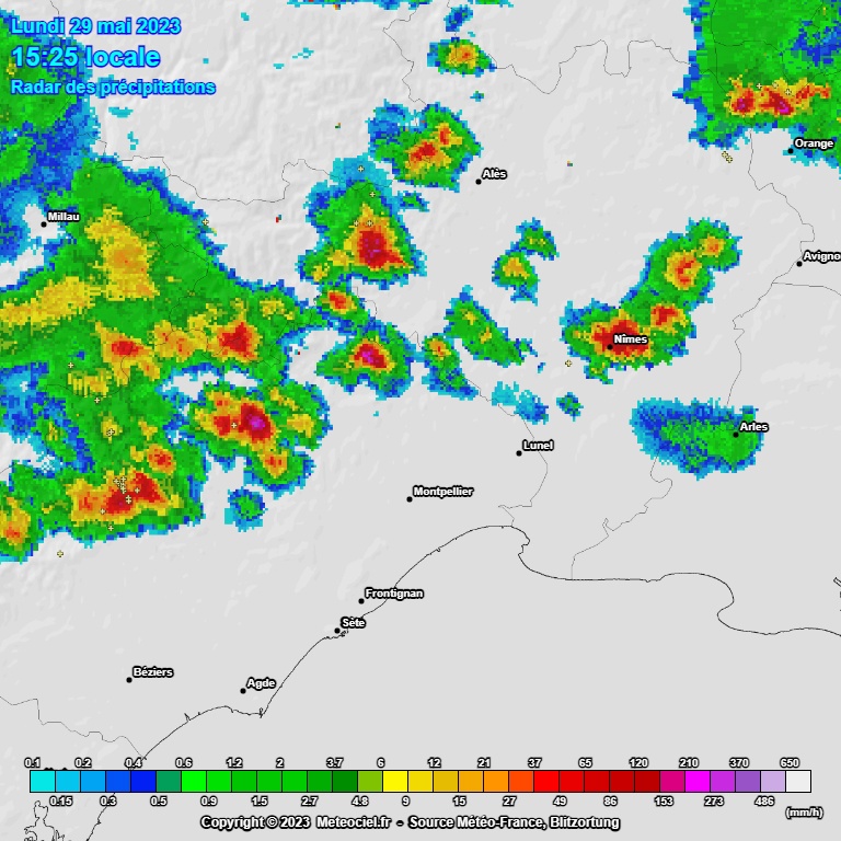 De violents orages accompagnés de grêle signalés , dans le Gard , mais aussi , un peu partout.. Puy de dôme.. Nouvelle Aquitaine ..Montpellier , en Corse…à Pau , dans la Soule , les Pyrénées.. etc..