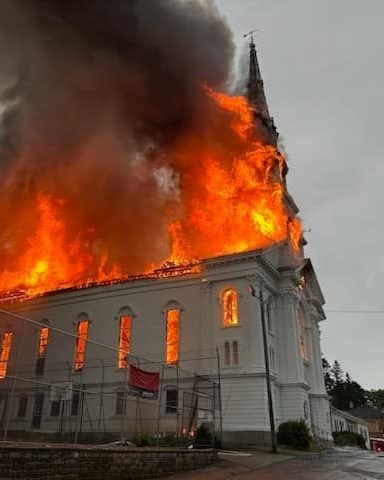 Le Feu céleste , la foudre frappe le clocher d’une église du Massachusetts âgée de 160 ans , après qu’il a été rapporté qu’ils célébraient quelques heures avant le mois de la fierté.