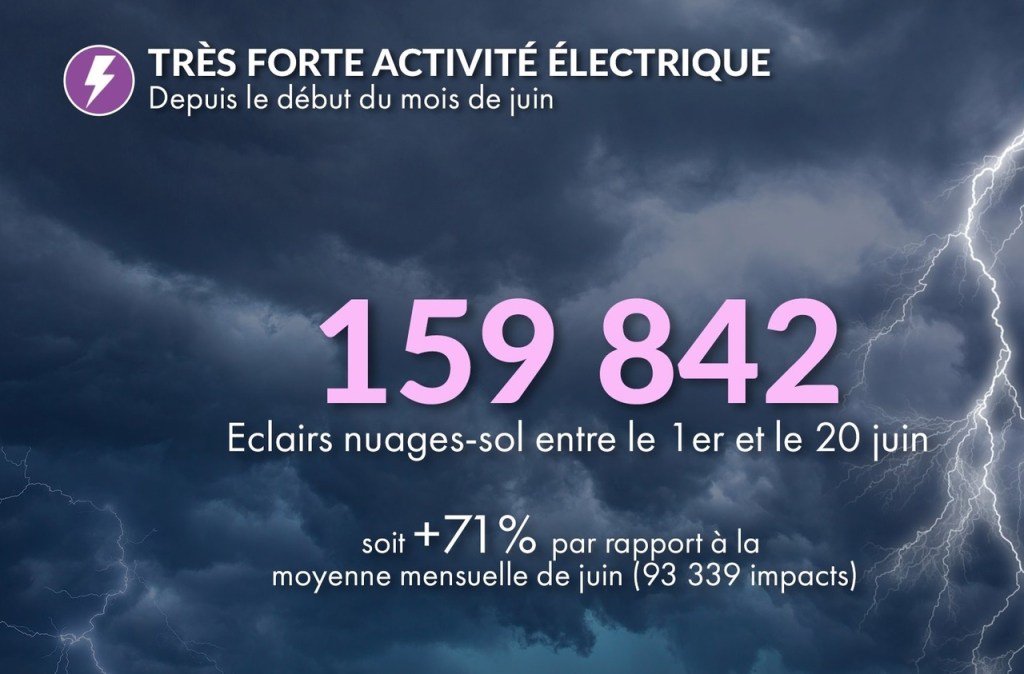 On va carrément vers un doublement des foudroiements par rapport à la normal d’un mois de Juin..!!