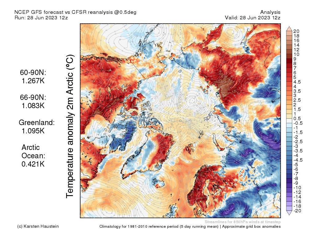 Des températures très élevées concernent actuellement le nord-est du Groenland. Il a ainsi dégelé hier à 2720 m d’altitude