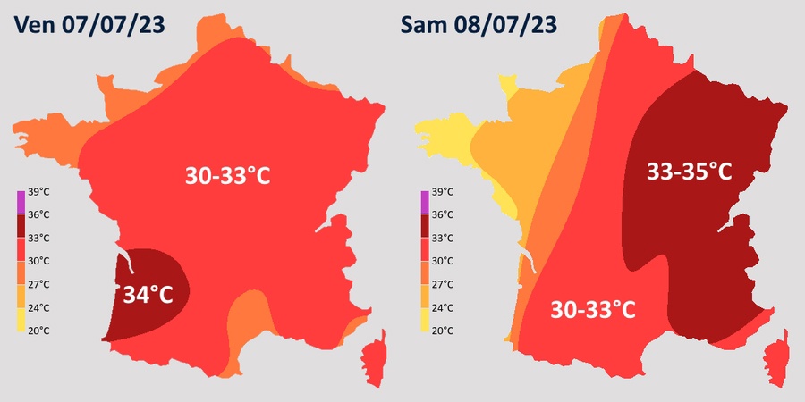 Un épisode de fortes chaleurs va débuter ce vendredi 7 juillet 2023. Il s’annonce plus fort et surtout plus durable en allant vers l’est et le sud.