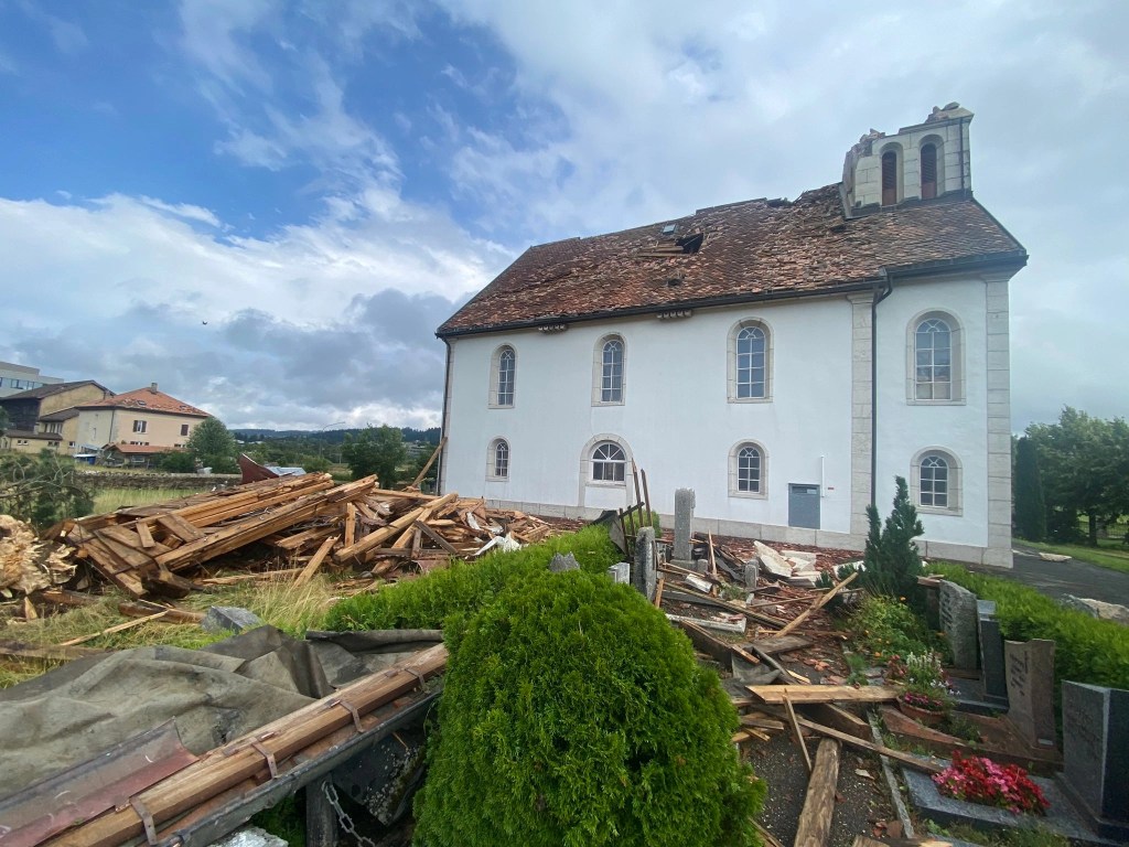Cet orage monstrueux a ensuite atteint sa maturité en passant la frontière, dévastant la commune du Locle. Des bâtiments d’entreprise ont été éventrés ! L’orage a poursuivi son chemin à La Chaux-de-Fonds, ville suisse de 37.000 habitants. La station de l’aérodrome a mesuré une rafale spectaculaire de 217 km/h ! En plus de dégâts matériels particulièrement importants, une personne est décédée à La Chaux-de-Fonds. Cette dernière a été écrasée par la chute d’une grue en pleine rue.
