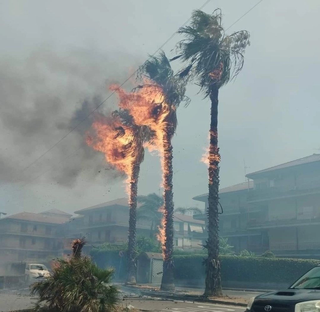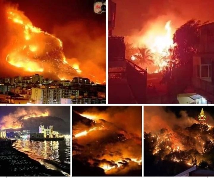 Une situation aussi grave ne s’est jamais produite ! La ville est couverte de fumée, la décharge a pris feu !! Le personnel et les bénévoles ne suffisent pas à éteindre cet enfer, l’Italie divisée en deux, Milan se noie, Palerme brûle