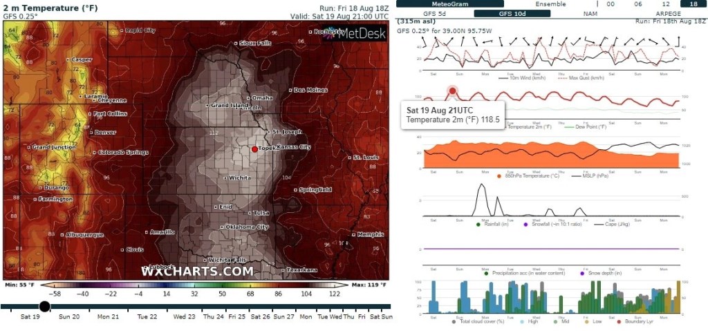 Les prévisions GFS montrent une étincelle de 118,5 ° F. voir carte..