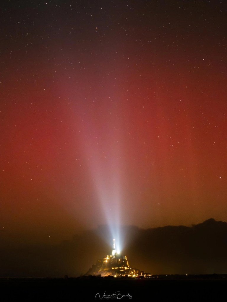 Le Mont Saint Michel sous les aurores boréales, hier soir!