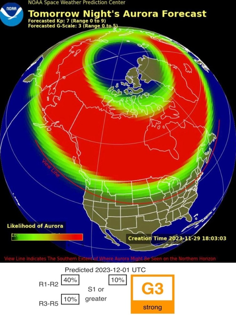 la NOAA a publié une surveillance G3 pour le 1er décembre en prévision des influences combinées des *3-4* CME. Ce sera GRAND..