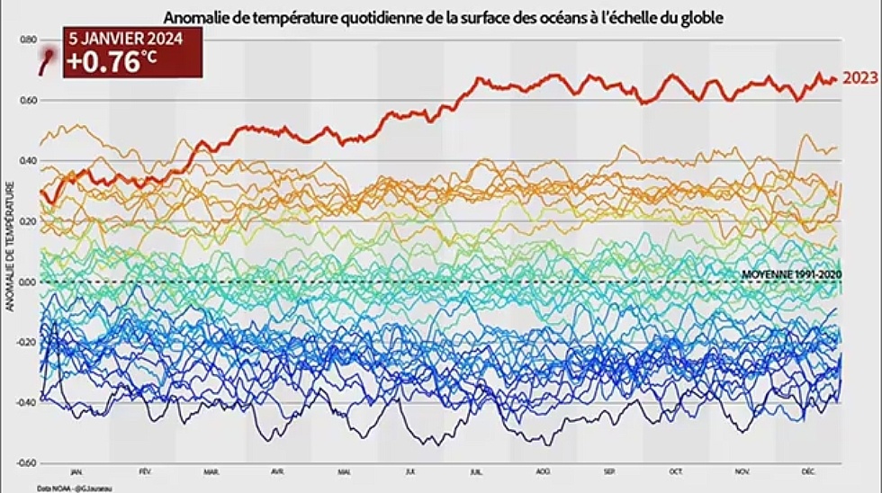 L’anomalie de la température de surface des océans atteint des niveaux RECORDS jamais vus auparavant, avec +0,76 °C…