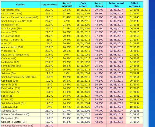 - Nîmes Courbessac : 21.5°C vs 21.5°C en 2015