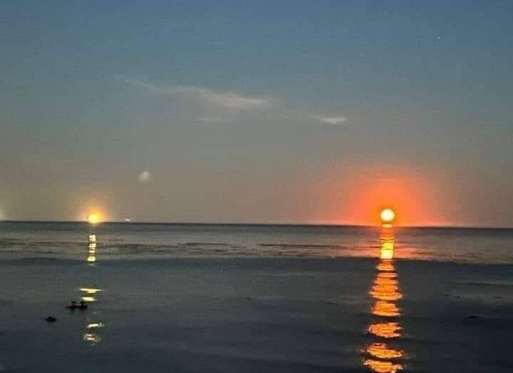Le soleil et la lune coïncident à l’horizon de la Terre de Feu.