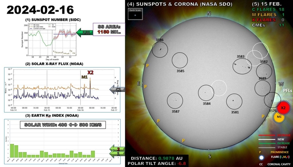 Un halo CME, puis une grosse éruption X2.5 et une CME très brillant au large du limbe associé à l’éruption M1.