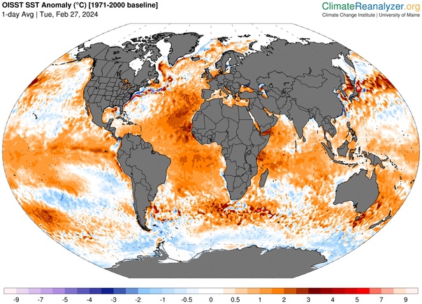 Globalement, elles sont très douces , en ce moment et c’est la plus grande anomalie observée de douceur, avec 21,1°C de moyenne dans le monde.
