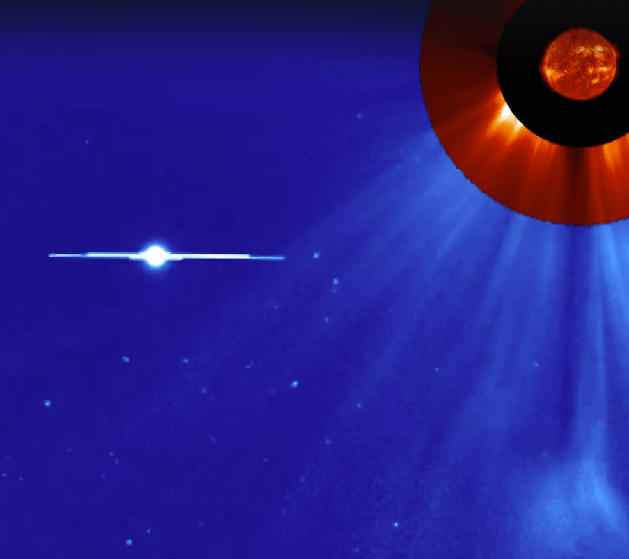 La comète en vidéo a atteint environ 2 millions de kilomètres de la surface du Soleil avant de s’évaporer (d’être vaporisée) en poussière, gaz et plasma. Pour ensuite être emporté par les vents solaires.