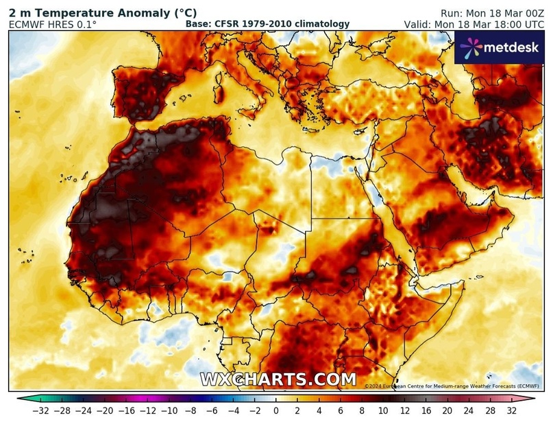 38°C Maroc 32,1°C à Archena en ESPAGNE.