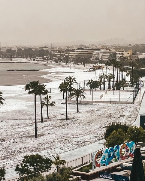 La plage de Saint Laurent du Var(06) après l’orage de grêle de la fin de journée. pareil à Golfe Juan et autres..