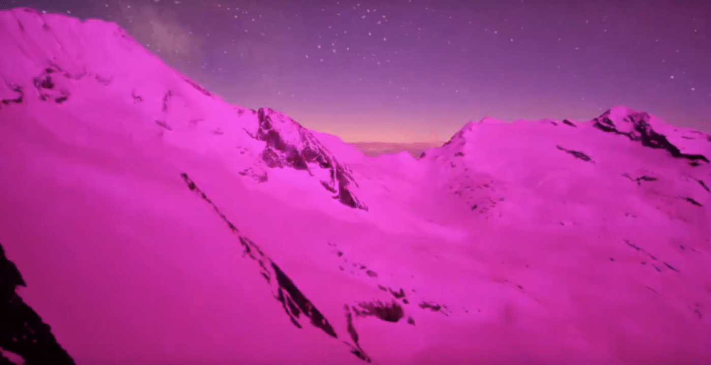 La lumière d’Amour danse dans le ciel et colore les montagnes en Rose /Rose Magenta..