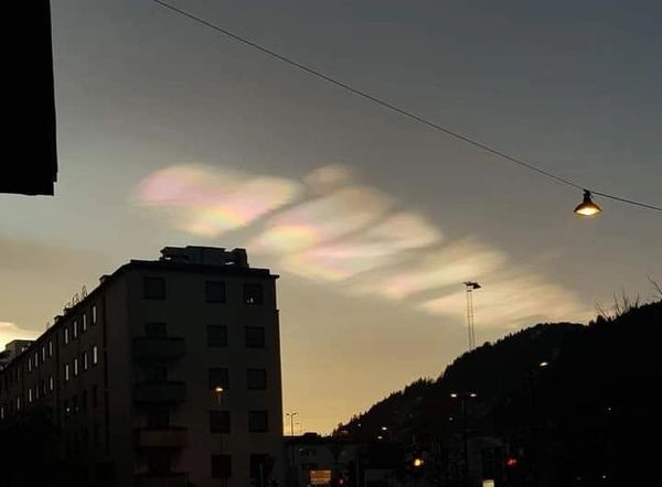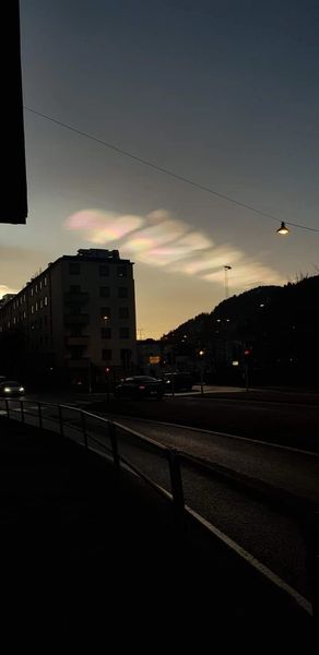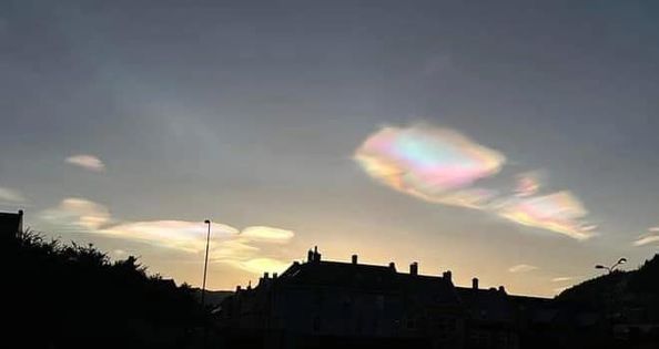 On voit bien le train d’ondes (les nuages irisés « hachurés » par des fréquences), on voit la précipitation dans ce monde, de ce qui est invisible, c’est une projection de lumière, d’un vaisseau Plasma en particules minérales Adamantines..