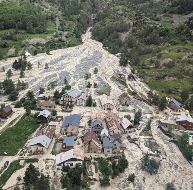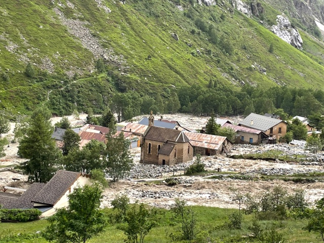Photo du hameau de La Bérarde en Isère, dévasté par des coulées de boue et de pierres hier, 21 Juin 2024. Coupé du monde, il a été entièrement évacué…