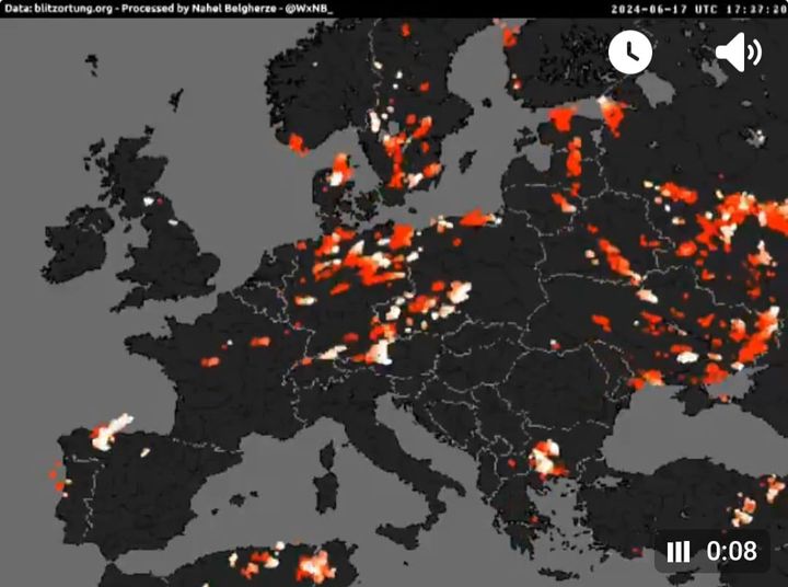 Plus de 1,3 million de coups de foudre ont été détectés à travers l’Europe depuis le lundi 17 juin. Cette animation montre comment les tempêtes se sont déroulées sur le continent