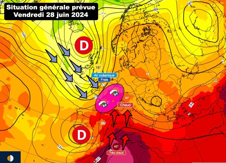 une goutte froide se positionne en atlantique , air frais le Week end prochain..