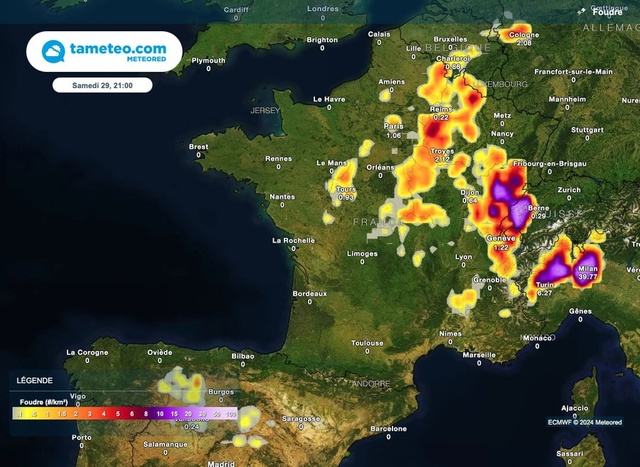 Risque d’orages très violents (avec Grêle) notamment sur Bourgogne-Franche-Comté et Grand-Est.