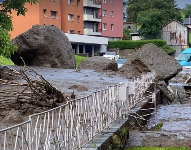 Les intempéries ont fait passer le débit de la rivière Maggia de 25 mètres cubes par seconde à 2000,..