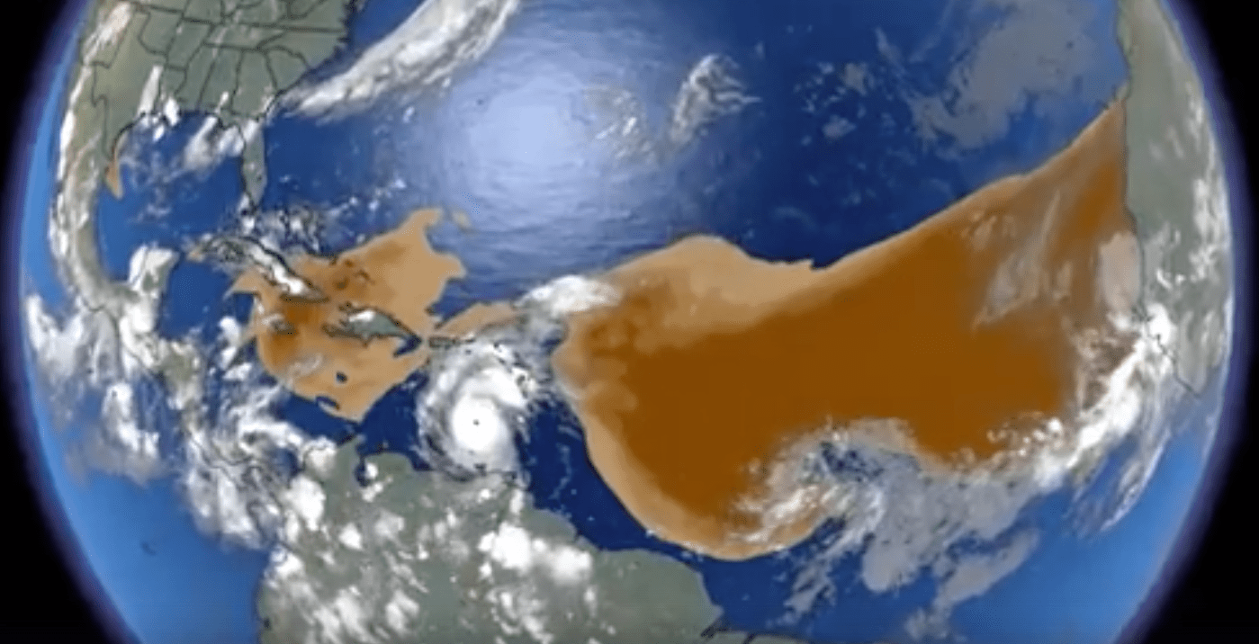 Si cela ne fait pas baisser la température de la surface de la mer de l’Atlantique Nord, rien ne le fera. Un ouragan puissant ( de catégorie 5 ) qui absorbe la chaleur et mélange les courants plus froids vers le haut, et des centaines de milliers de tonnes de poussière du Sahara qui créent un abri solaire naturel.
