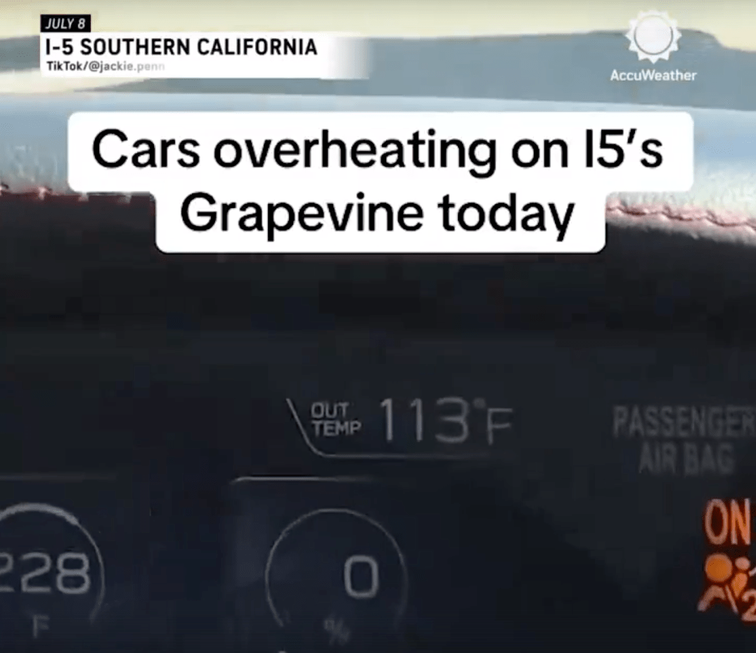 Les températures étaient si élevées hier dans le sud de la Californie que plusieurs véhicules sont tombés en panne sur le bord de l’autoroute en raison d’une surchauffe.