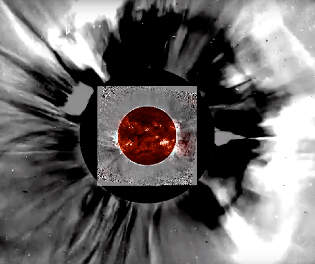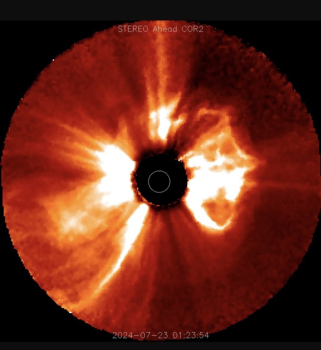 Une éruption majeure s’est produite derrière le flanc nord-ouest, générant un halo CME rapide et énergétique et provoquant une tempête de rayonnements.. protons..