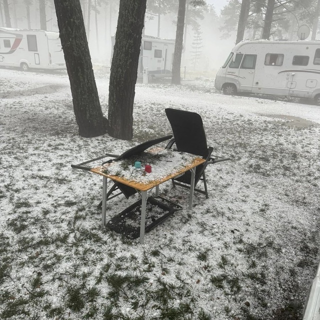 D’impressionnants orages de grêle s’abattent sur les Pyrénées-Orientales ! Photo des grêlons recouvrant un camping à Fontrabiouse.