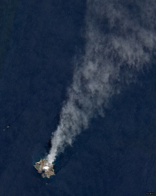 Éruption volcanique sur White Island depuis le satellite Sentinel-2 (Nouvelle-Zélande, 12.8/2024).