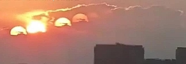 Sept « soleils dans le ciel de Chengdu dans le sud-ouest de la province chinoise du Sichuan..