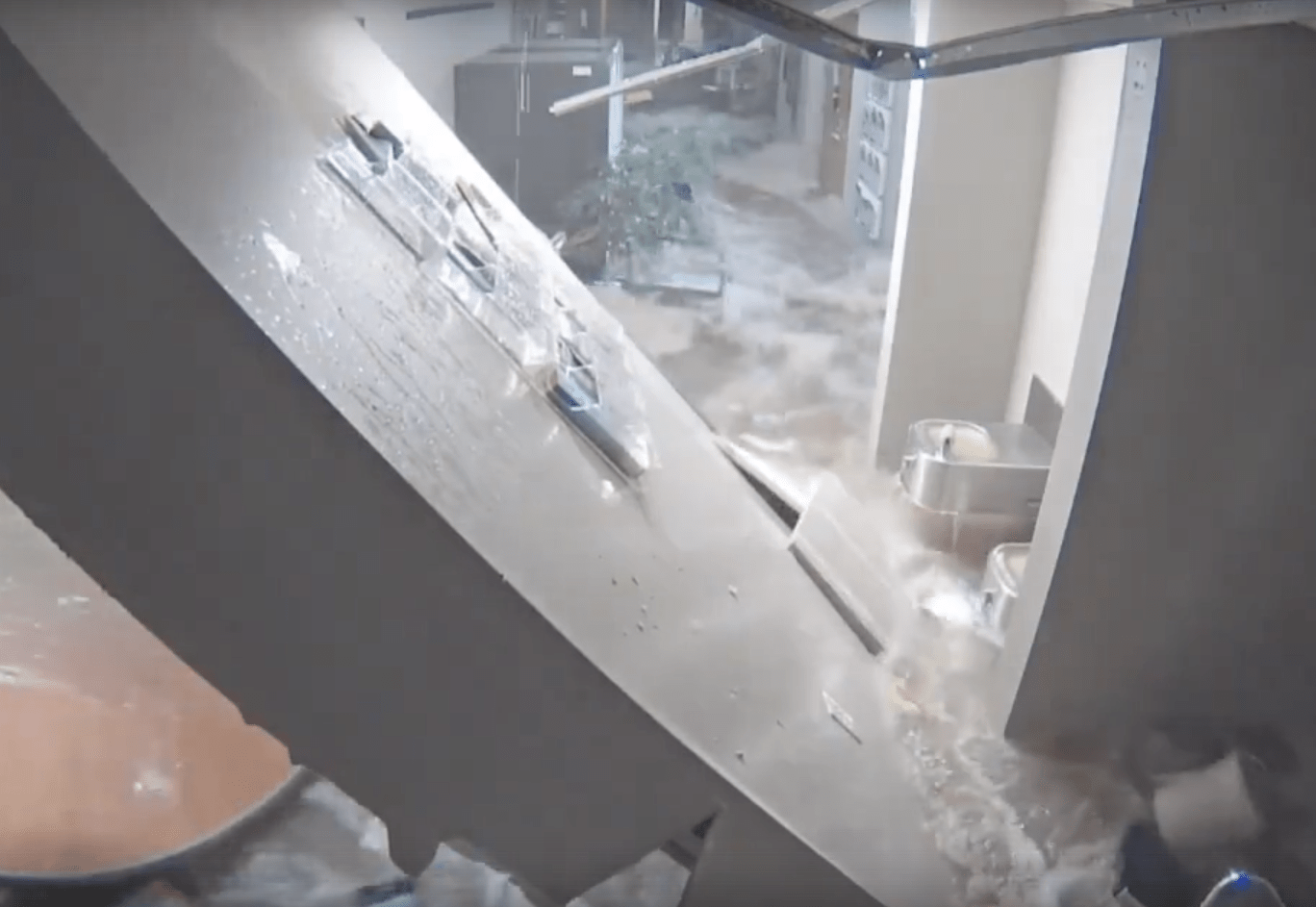 La bibliothèque de Smithtown innondée causant 10 millions de dollars de dégâts, notamment à des documents historiques inestimables.