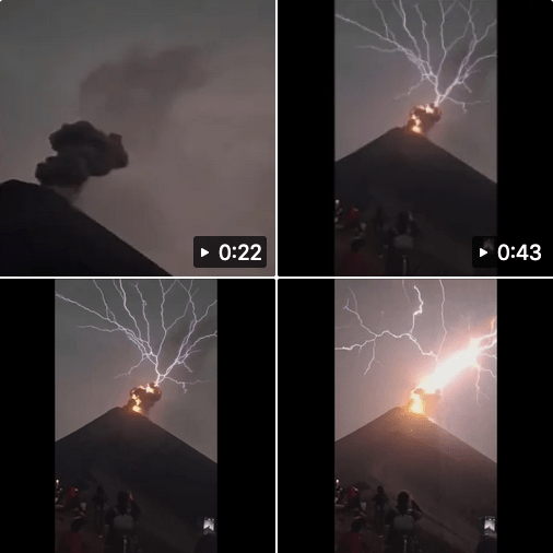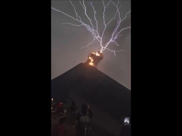 Ce feu du ciel répond à la foudre volcanique, qui vient du volcan, la capture montre d’abord une foudre en arbre, puis une explosion digne d’un Soleil, une émission intense de rayonnement électromagnétique.