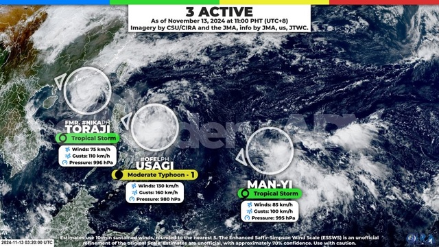 des tempêtes dont certaines sont passées à l’état de Typhon Comme Usagi ont pris vie simultanément..