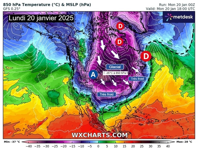 En cette dernière décade de janvier 2025, les Etats-Unis s’apprêtent à connaître une vague de froid intense et surtout très étendue, apportant des températures glaciales sur la majorité du pays et des chutes de neige jusqu’aux abords du Golfe du Mexique.
