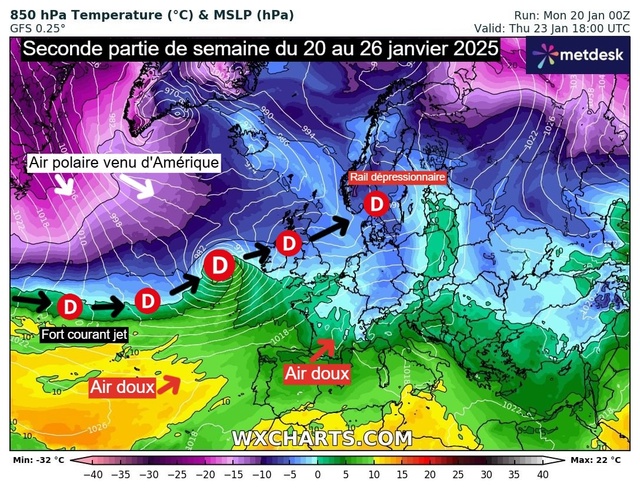 Bien au contraire même, le temps sera doux… du fait de la reprise de l’influence océanique sur l’Ouest de l’Europe, France y compris.