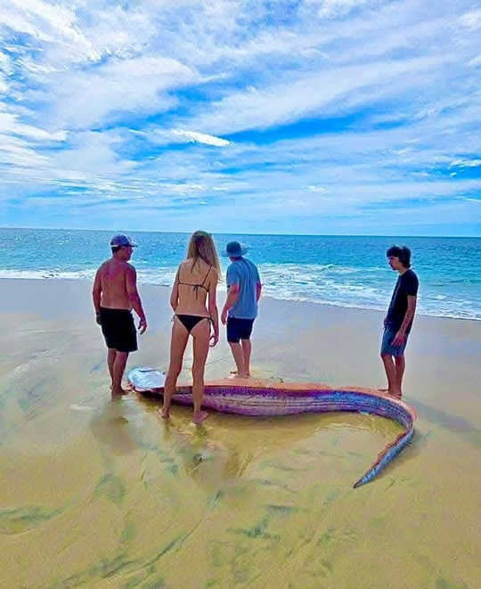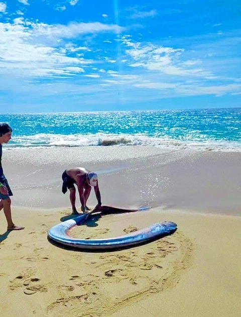 Un poisson rameur créature des profondeurs marines et populairement associé à la prédiction des tremblements de terre, a été retrouvé échoué et sans vie, ce 19 Janvier 2025 à Cabo San Lucas au Mexique (Photos)