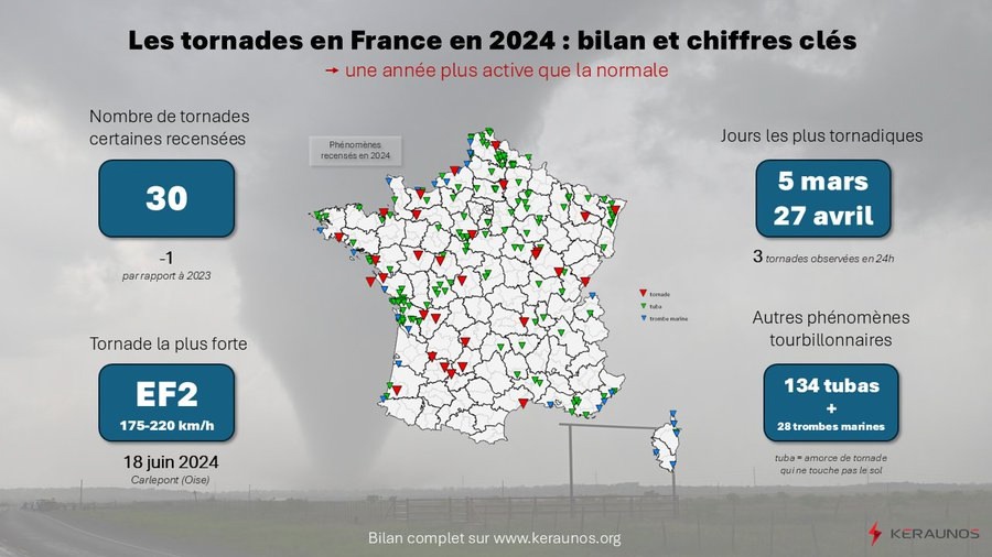 Notamment printemps et automne, avec 30 tornades, dont une EF2 , 124 Tubas et 28 trombes marines.